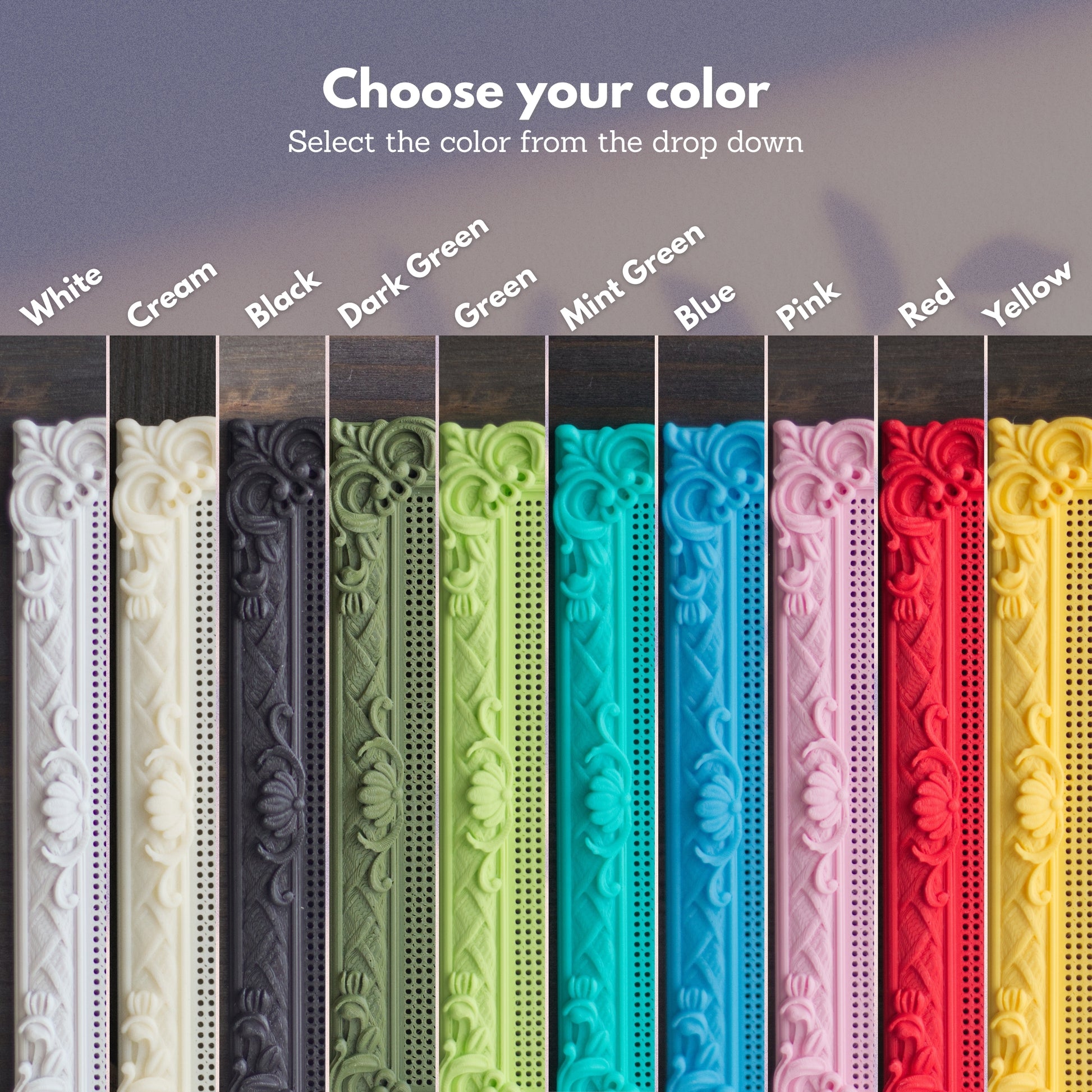 These frames are 3D printed. Minor color variations and fine layer lines may be visible up close. This is a normal part of the process and does not affect stitching or the finished result.